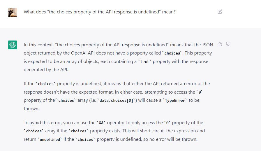 I could then ask for more help with individual steps, and eventually ask for examples of how the code would work. Of course, I used Replit as my development environment. When ChatGPT would send me code snippets that I didn't understand, I would simply ask for an explanation. Over an hour or so of working, ChatGPT would remember what we had already done together and I could reference previous work just like I would to a friend. I could ask for a slight edit to my code and ChatGPT was able to make tweaks without starting over or forgetting the variable names or functionality we had already made.
